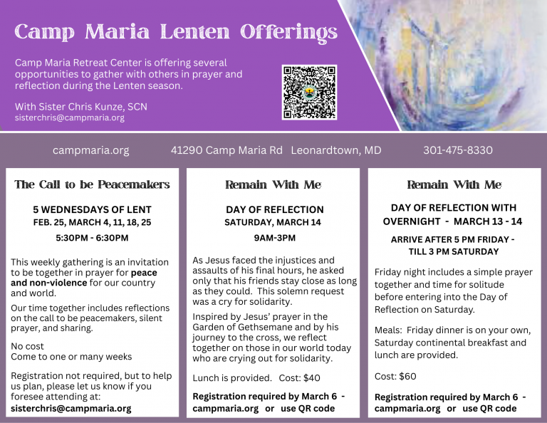 Contact Our Office at 301-475-8330 or director@campmaria.org To Book Your Retreat